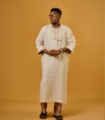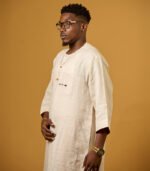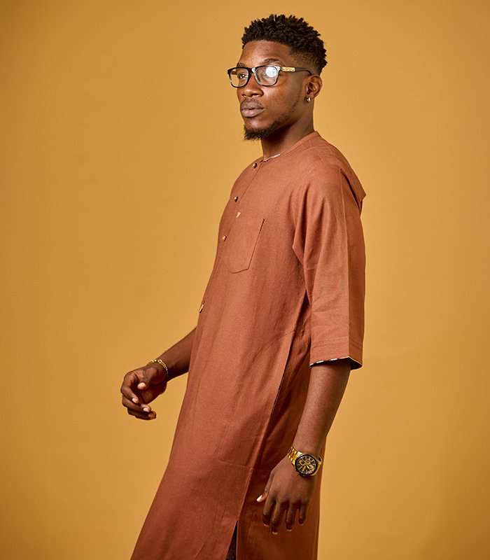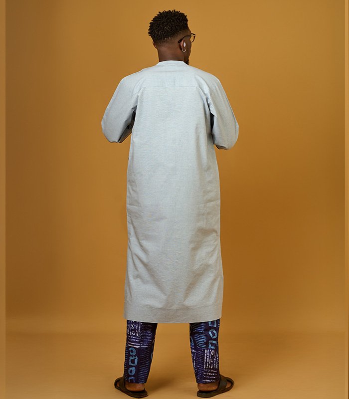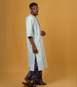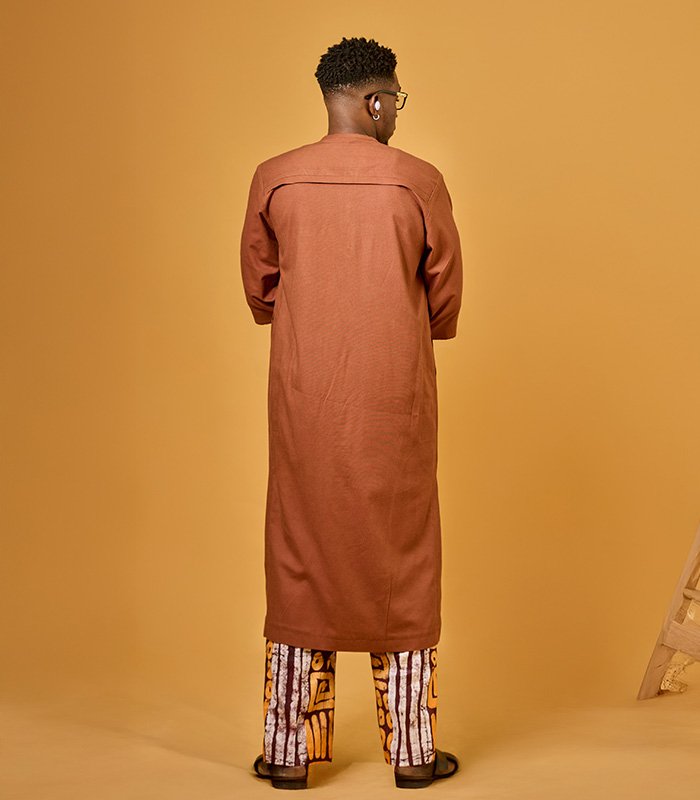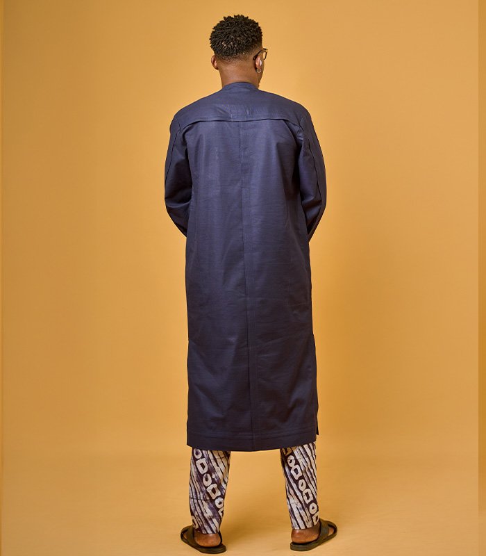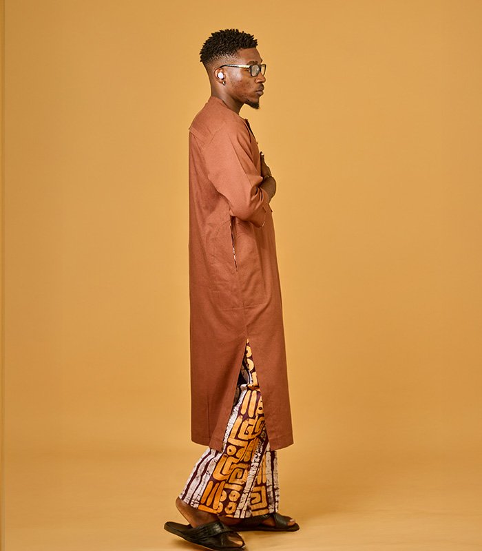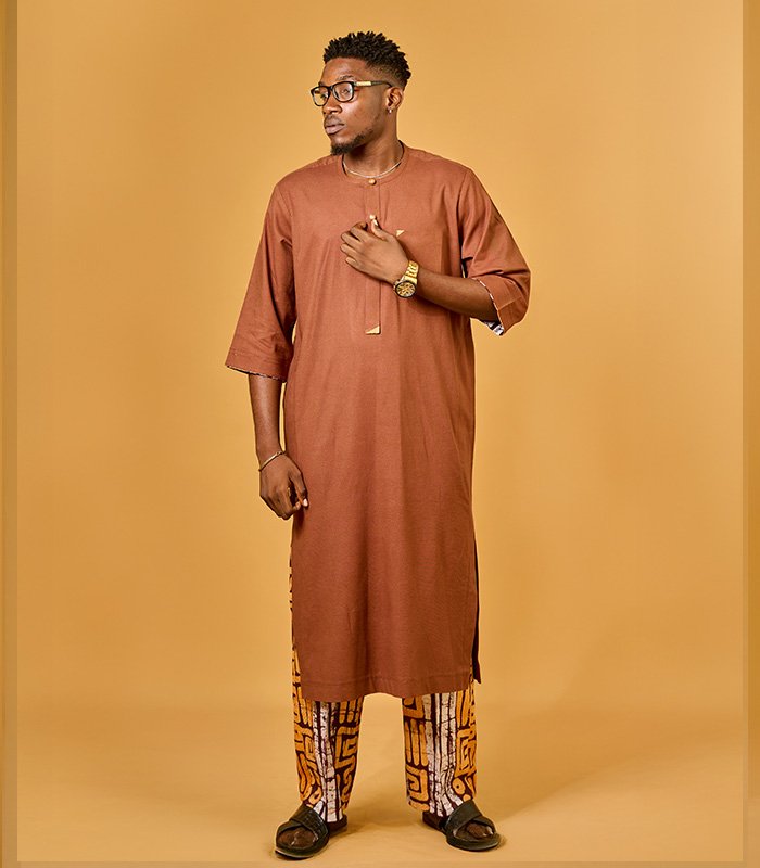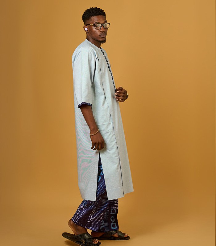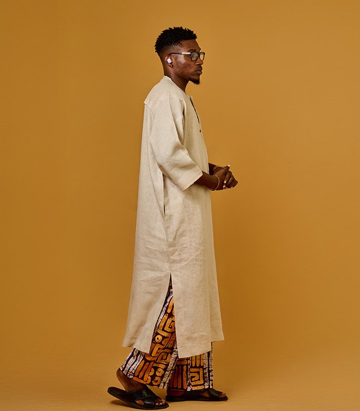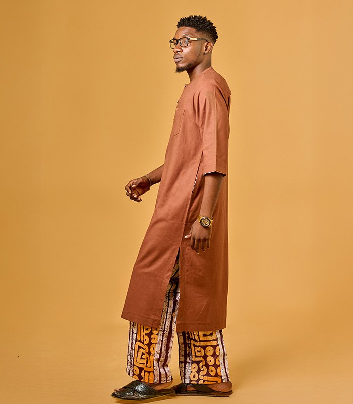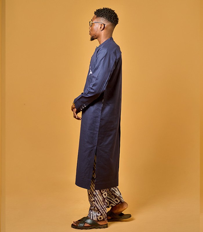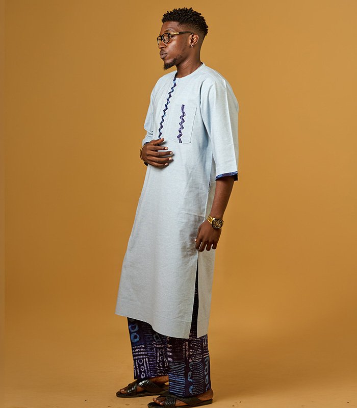 Men tunic set made with a blend of linen and adire fabrics