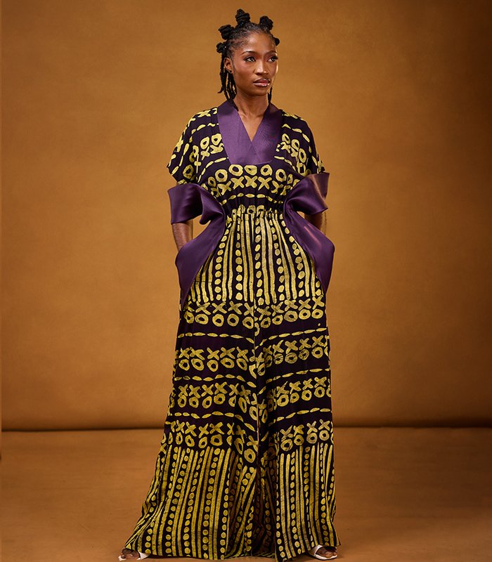Jumpsuits, made with adire chiffon fabric and a touch of Mikado