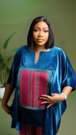 Two-piece set. Velvet danshiki and aso oke trousers